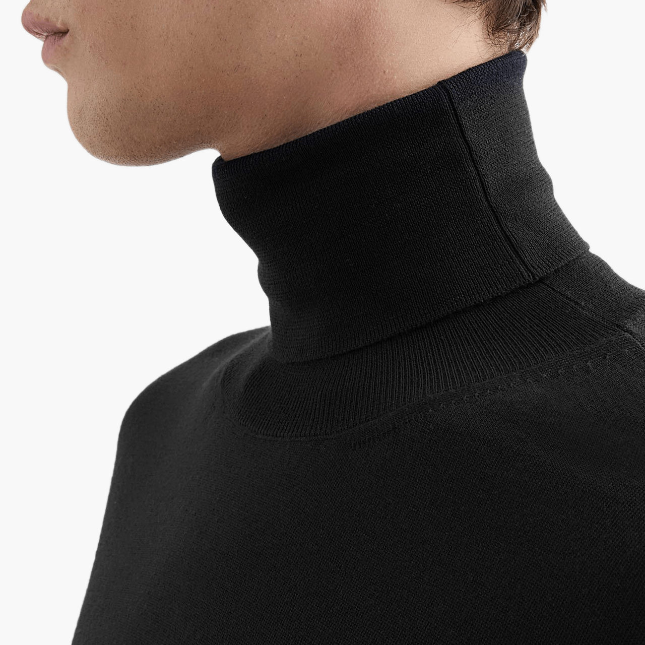 - Col roulé qui apporte immédiatement une touche d’élégance et de structure.
